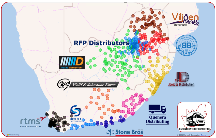 The National Distribution Solution (NDS) is an alliance of 10 independent owner-run FMCG sales and distribution businesses servicing the forecourt and general trade channels throughout South Africa (7800 customers).